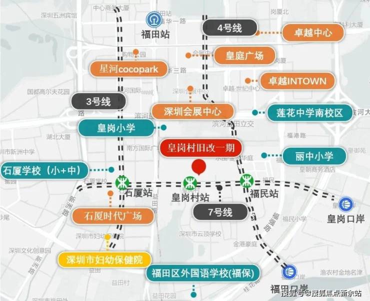 7 号线皇岗村站与项目直连接驳,2 站即达皇岗 / 福田口岸、福田高铁站,深港通勤高效便捷。