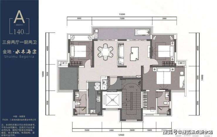 A户型:建筑面积约140㎡; 三房两厅一厨两卫 大阳台 入户泡池
