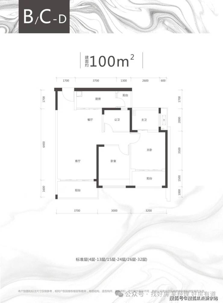 B/C栋主力户型为100-119㎡的三房,适合中小家庭。不过需要注意的是,100㎡户型仅做三房一卫,第三卧室仅6㎡,空间利用率受到一定限制。