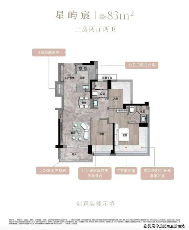 建面约83-133㎡3-4房宸式美学新著,LDKB巨幕方厅,跑道式景观阳台,小家化星级酒店主卧套房,270°环幕全景舱,客厅次卧无剪力墙灵动设计,实现超高实用率,每一户皆是颐安“超新一代作品”的匠心宣言。