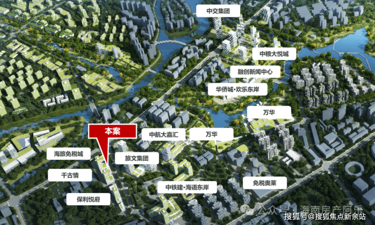 项目位于三亚市吉阳区迎宾路(海旅免税城北侧)。随着自由贸易港政策落地,在总部经济及中央商务区规划中,东岸单元作为建设大型综合消费商圈+总部经济核心区。汇集中粮、中交、保利、中航、中铁建、五矿等世界500强企业,已成为三亚城市功能上的中轴城心,凝聚着最重要的部门,昭示着三亚未来发展的方向,区域价值未来可期。