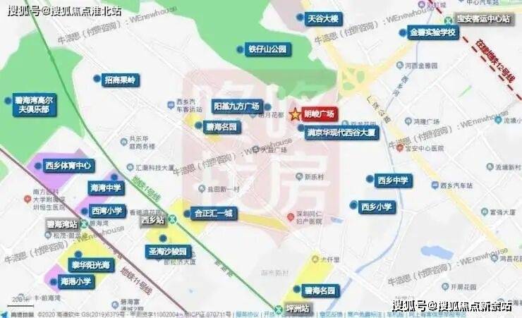 朗峻广场项目位于宝安区西乡片区西乡大道与铁仔路交汇处,旁边即为铁仔山公园,周边集聚了多个产业项目,比如天谷大楼、阳基九方广场及满京华现代西谷大厦等。