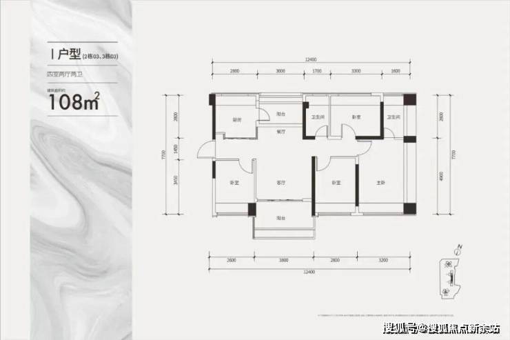 建面约108㎡双龙抱珠四房户型