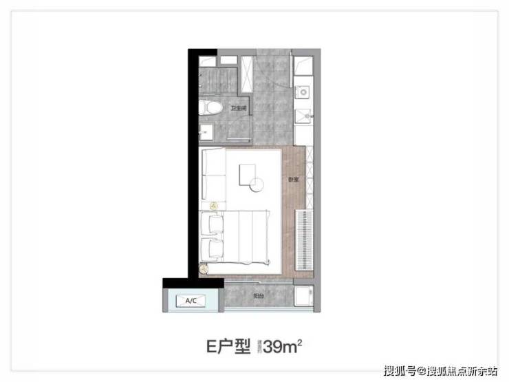约39㎡产品:一居室户型,设计简洁大方、功能规划科学合理,厨卫俱全,紧凑实用;