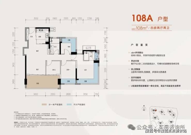 以108㎡户型来看,灵活可变的设计,轻松实现房间与客厅空间打通变成更为阔绰的大横厅。!