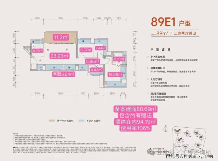 部分户型使用率超100%,实用率拉满,舒适度翻倍。