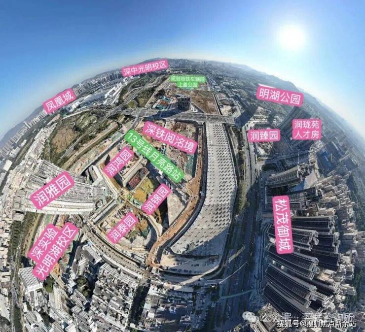 凤凰文体公园选址于光明区凤凰街道轨道13号线车辆段片区,地处光明凤凰城核心腹地,也是光明“旗舰大盘”润宏城所在片区。