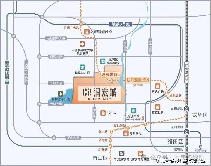 而润宏城作为13号线(在建)的地铁上盖大城,沿线又串联光明城站、西丽站两大枢纽,不仅能快速通勤南山,还能便捷联通福田、宝安、龙华等各大中心,轨道通达能力很强。