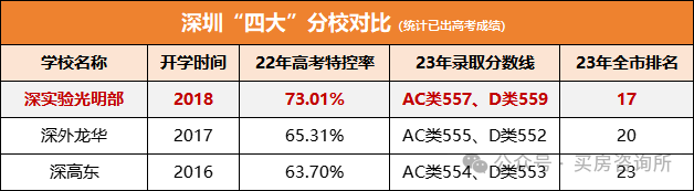 深实验光明高中部,凭借着母体学校的优势,分校办得很成功。经过几年的努力,目前已经超越了深外龙华、深高东,成为深圳四大分校中发展最好、分数最高、高考成绩最好的一所高中。2023年,深实验光明部,高考985院校录取人数22人,211录取人数达58人。