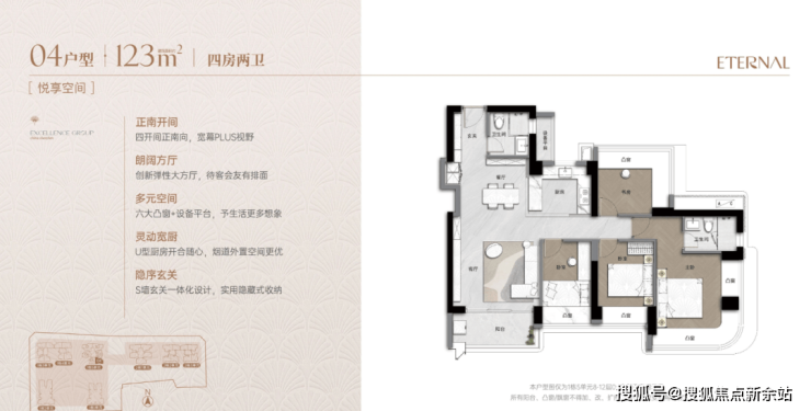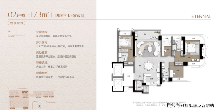 173㎡奢阔户型:南北通透,双阳台设计,超大面宽客厅,适配高端改善型人群的品质生活需求