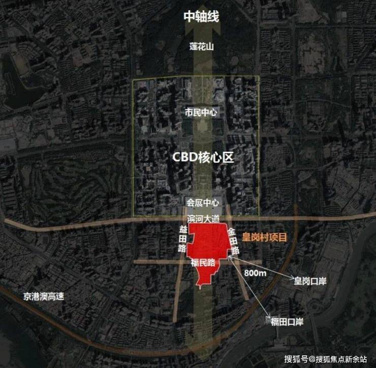 皇岗村改造项目,位于福田福民路与皇岗二街交汇处西北角,紧邻深圳地铁7号线皇岗村站,地处深圳中心的核心腹地。