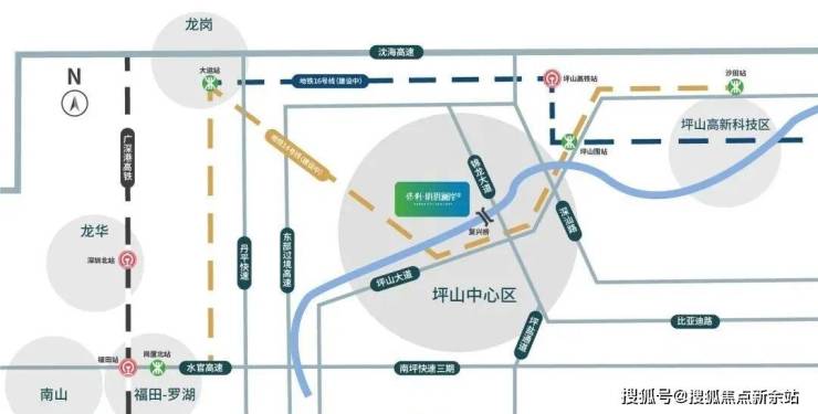 保利明玥澜岸花园位于坪山区碧岭街道沙湖社区新龙路(规划龙勤路)与规划复兴路交会处南侧。