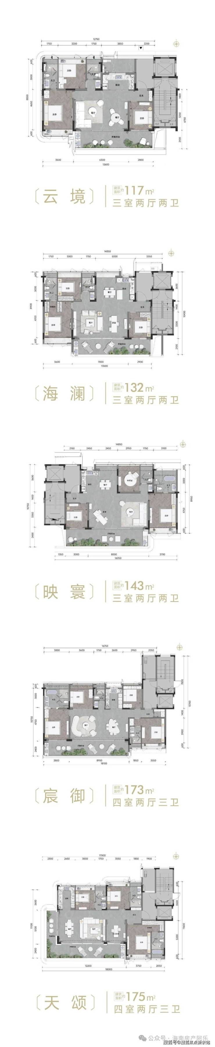 产品由绿城青和设计院与蓝颂景观大师联袂打造,清水湾首家全新4代住宅,以1.0低容积率匠筑14栋7层洋房,规划117-175㎡奢适空间,精准匹配追求高端品质旅居的塔尖人群需求。