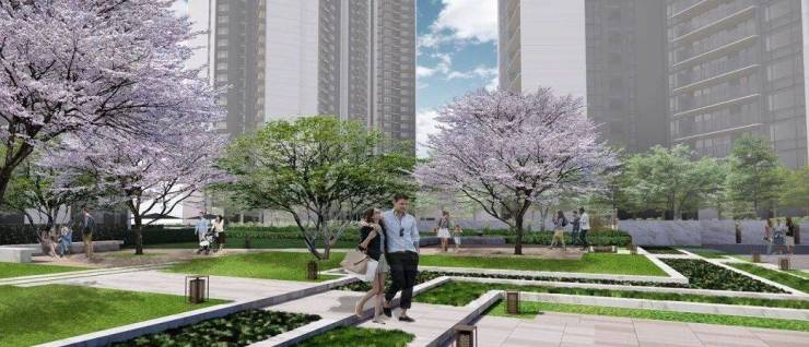 沿园林景观轴线大道,设置休憩平台、中央草坪、观景亭、休闲茶座等,以“四季有花”的景观理念,搭配系列名贵树种,打造闲情逸致的邻里交流聚会空间。