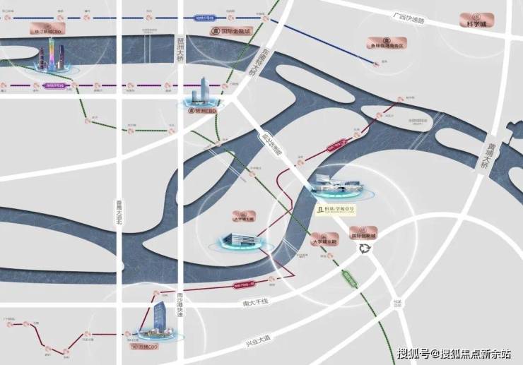 恒基·学苑壹号项目位于第三中轴核心腹地——国际科技创新城内,肩负“大脑”角色,与CBD黄金三角只有10-15公里的距离;广州科创核心区位,对标美国硅谷,未来城市发展风口。