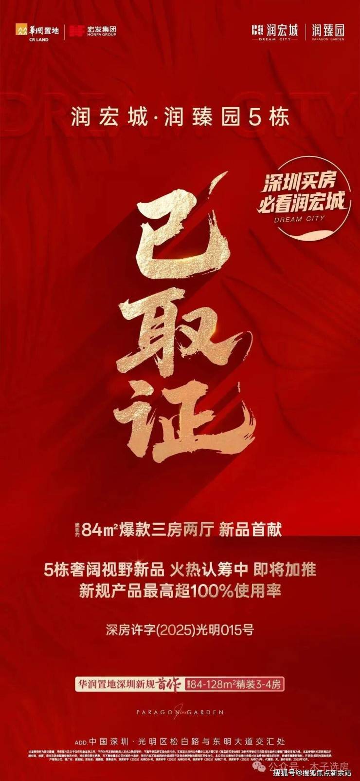 最新消息:光明热销新盘华润润宏城二期【润臻园】5栋已取证,今天正式开售,5万锁房源先到先得!