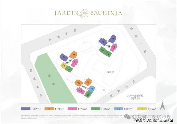 湾啟紫荆2栋,建面约111/122/142㎡ 3-4房,总套数:484套,待售套数:约120套