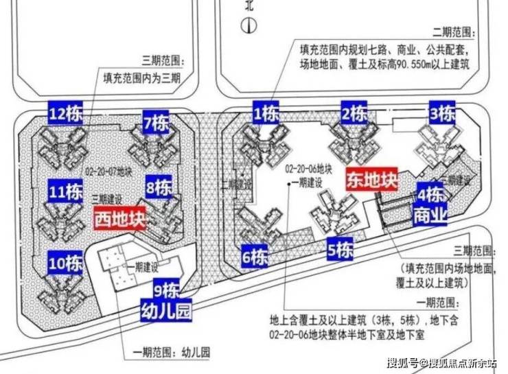 东区:占地约2.1万㎡,容积率5.28,包含住宅、商业、文化活动室、老年人日间照料中心和其他基础配套设施。1栋、2栋总高47F,3T6户;3栋、5栋总高32F,2T6户;6栋总高32F,2T5户;4栋属于商业,总高2层。