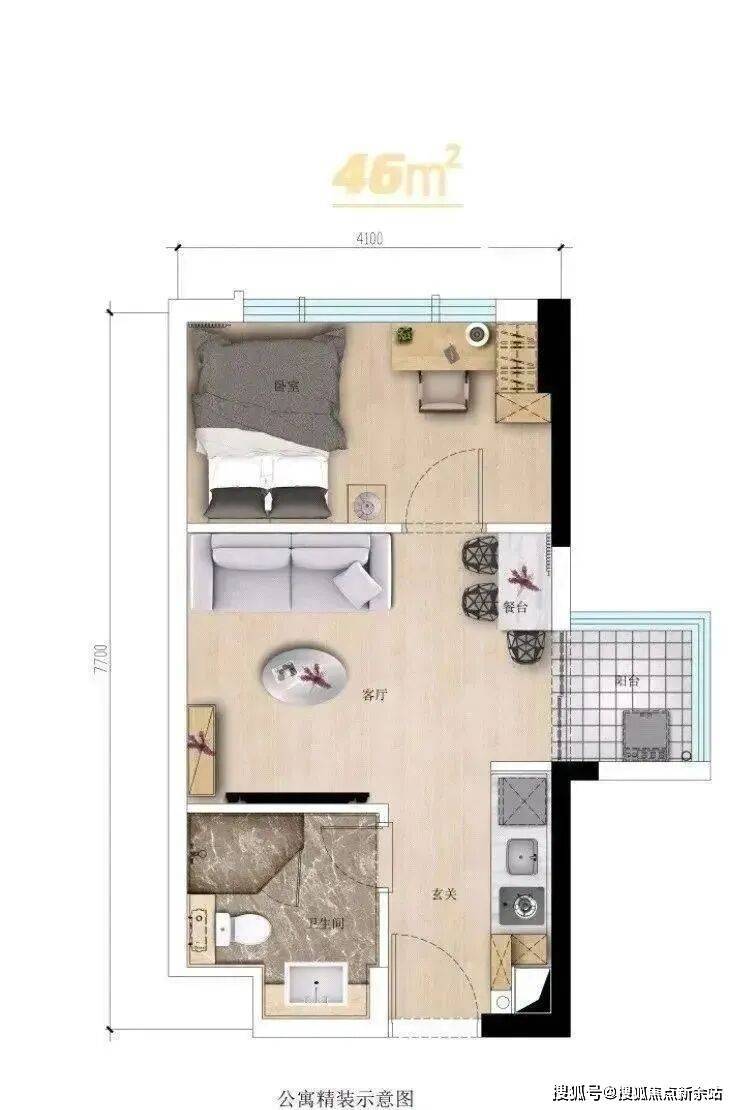 面积段43-46m²,一口价房源220-228万起,满足不同家庭的需求。