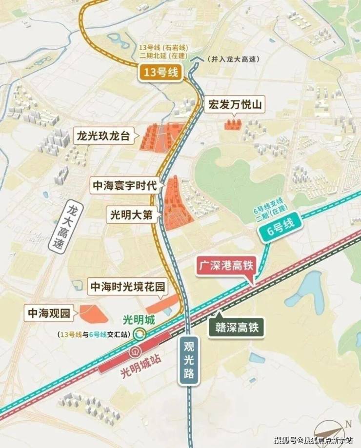 距离在建的13号线同观路站,去光明城站(高铁+地铁站)步行,未来地铁去南山很便捷,出门就是主干道观光路,尅可以很快转上光明大道驱车前往中心区。