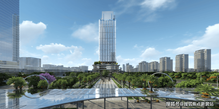 垂直绿化设计,营造花园式办公场域,生态景观始于约14816m²河套合作区中心公园,连接商业裙楼屋顶花园,优雅延伸至办公塔楼