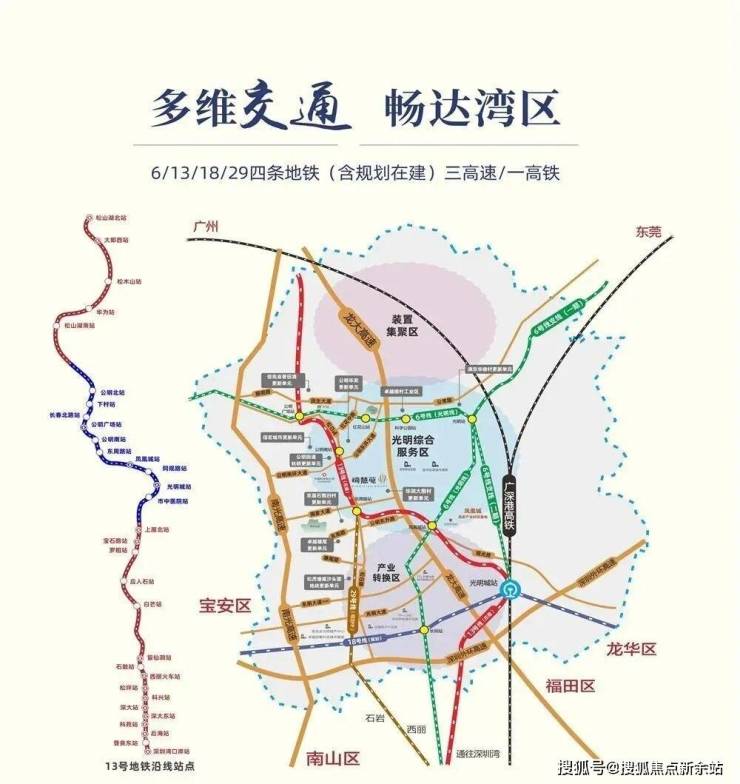 必选畅达交通:1条高铁/3大高速/4条地铁快速直抵福田/南山/宝安,通达粤港澳城市圈1条高铁:光明城高铁站,湾区门户占位,国家级铁路枢纽3大高速:龙大高速,南光高速,深圳外环高速;4条地铁:在建地铁13号线东周路站直抵深圳湾口岸-东莞松山湖,6号线连接光明-深圳北-福田科学馆,15站可达福田中心区。18号线(规划):贯穿盐田区、龙岗区、龙华区、光明区、宝安区;29号线(规划):贯穿南山区、宝安区、光明区。立体交通承载区域高速发展,高效通达带动大城繁华。[优享商业]:宏发大仟里、天虹商场、公明广场等近30万㎡大型商圈环伺;项目自带社区商业配套,优质生活随时畅享!