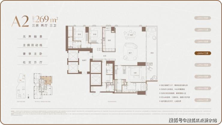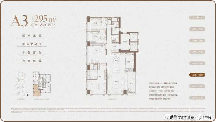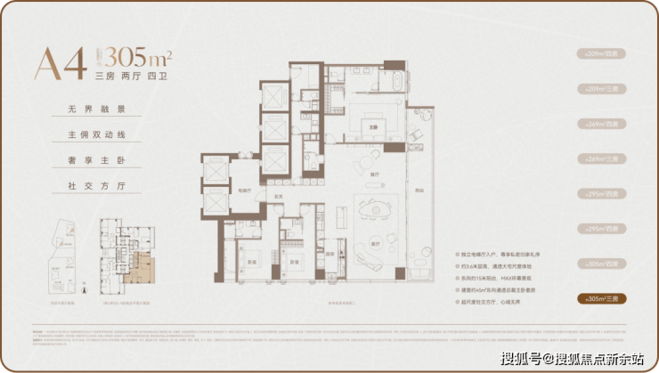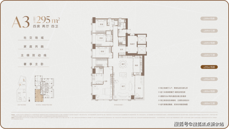低区5F起(150米以内)是约209-304㎡四房以上大户型;