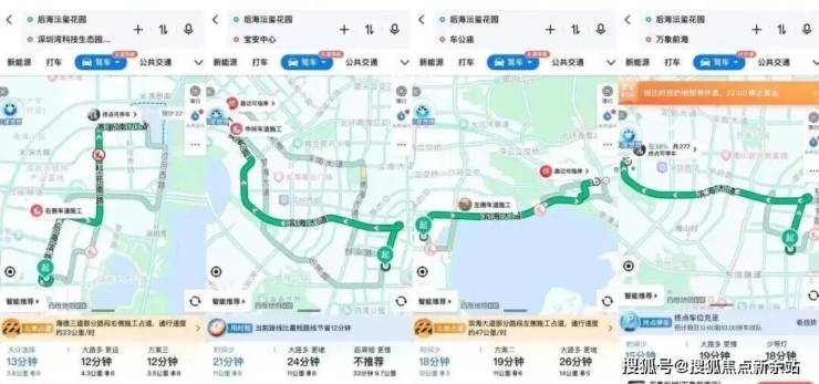 <自驾>:周边分布有多条高速/快速路及区域主干道,如西侧是后海大道,北侧是滨海大道、南侧是东滨隧道,去往南山科技园13分钟,去往前海、福田、宝中大概在15-20分钟。