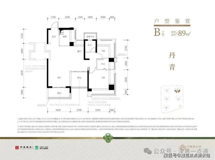 89㎡的4房2厅2卫,设计的是经典竖厅格局,进门入户玄关,客厅3.45米开间,动静分区,三开间朝南,分别做到了主卧14.54㎡/次卧7.96㎡/次卧7.56㎡/次卧5.8m²(包含墙体飘窗),主卧+1个次卧270°飘窗,U型厨房,公卫三段式干湿分离,得房率约102.2%(包含赠送),阳台5.52m²西南或东南朝向。飘窗赠送面积13.17m²+阳台赠送面积6.61m²+设备平台1.8m²=实际赠送面积约21.58m²。