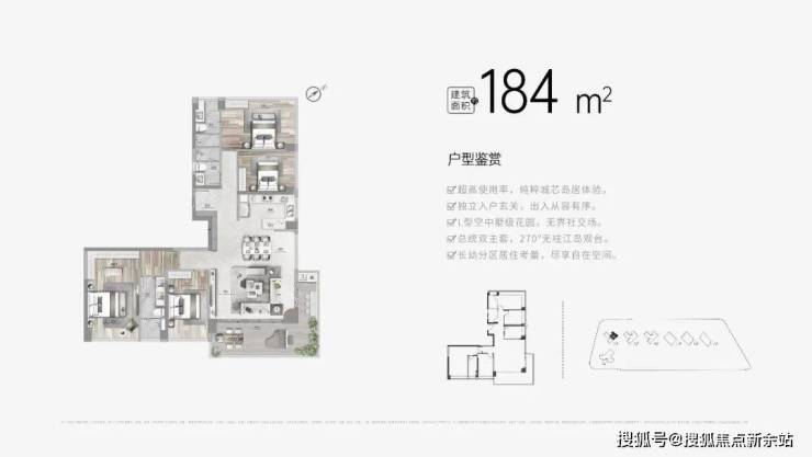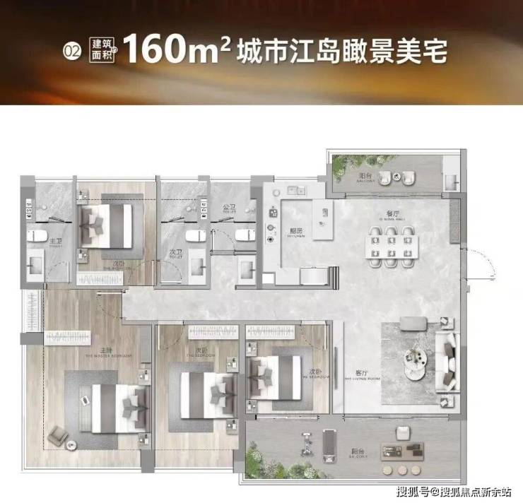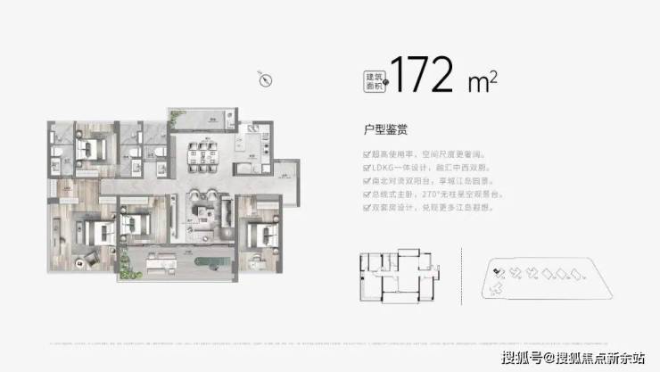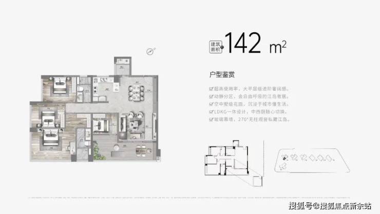 该户型展现了豪宅格局设计风范,整体呈L型,可能有人嫌不够方正,但它亮点十足,比如L型的阳台多面采光,望半月岛湿地公园。