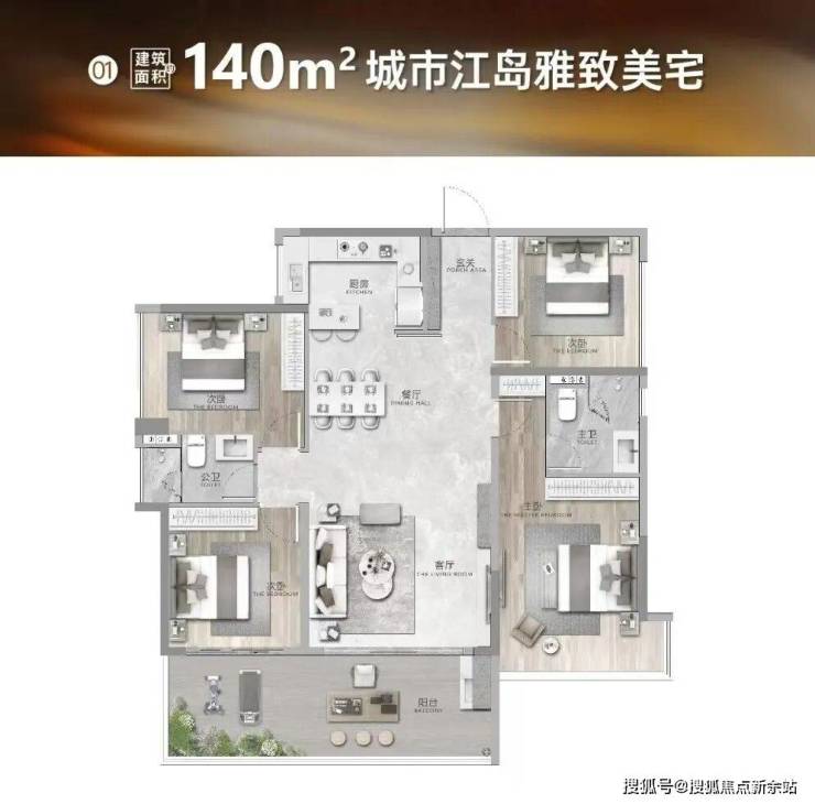 南北对流双阳台户型,3卫配置,空间尺度感拉满。