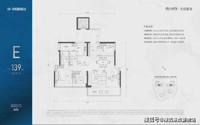 139㎡的4房2厅2卫,1栋03/2栋02高区户型,电梯入户送独立公区,设计的是竖厅类双龙抱珠格局,四开间朝南,主卧大套间设计,有1个多功能间可以做书房,6.4米长观景大阳台,L型厨房带1个生活阳台,卫生间干湿分离,西南朝向。
