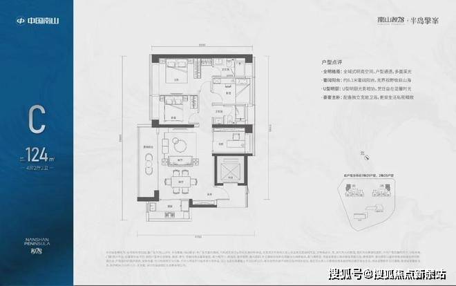 124㎡的4房2厅2卫,1栋01/2栋05户型,电梯入户送独立公区,设计的是横厅南北通透格局,客餐厅6.1米开间,LDKB一体化设计,五开间朝南,主卧大套间设计,6.1米长观景大阳台,U型厨房,公卫三段式分离,西北或东南朝向。