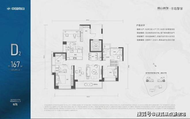 167㎡的5房2厅3卫,1栋02/2栋03高区户型,电梯入户送独立公区,设计的是竖厅双龙抱珠格局,四开间朝南,超宽敞客厅巨幕阳台,主卧大套间设计,U型厨房,双公卫三段式分离,西南朝向。