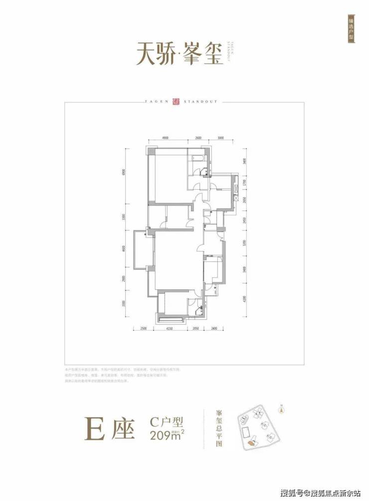E座:约209-211㎡4房3卫 南北通