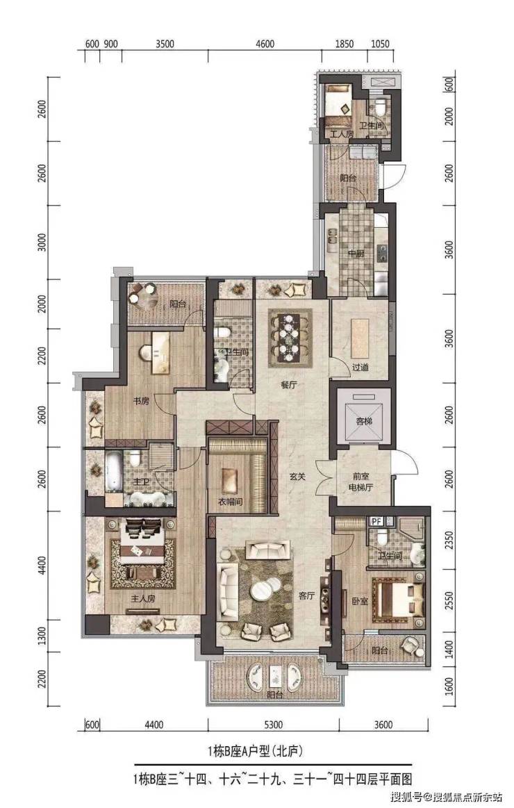 1栋B座:148米,46层,共84户,朝南为主,三梯两户