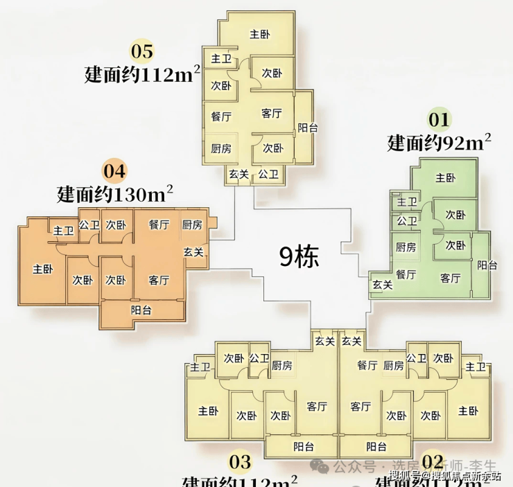 首期主推9、10栋全南向新规产品(约129㎡四房、约112㎡四房、约92㎡三房),首推楼栋景观质素佳,东南侧享受城市与公园景观,中高层眺望广州塔三件套。西南侧单位部分享受浮岛中庭与中心园林景观,楼间距约50-130米,视野阔绰。