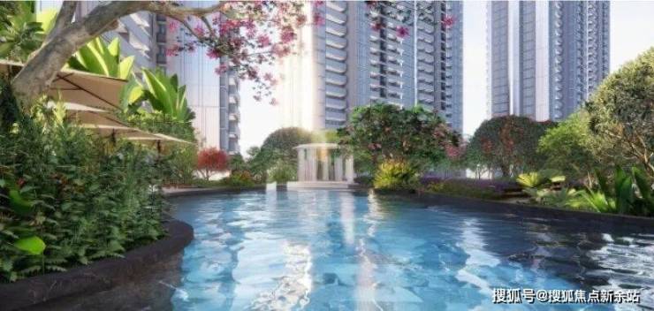 园林请的是新加坡团队设计,度假风满满,约4000㎡的空间里泳池、阳光草坪、休闲吧台、童趣乐园、康养中心全部配齐。