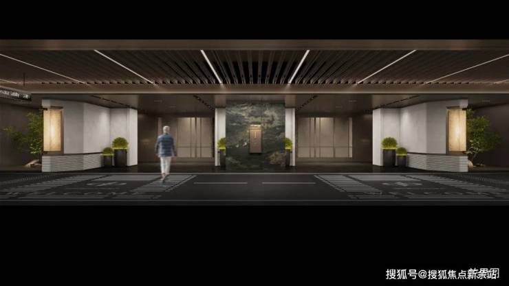 🔘星级车库:车库双大堂设计,大面积采用天然浅色石材,并于天然奢石加以点缀,光厅顶面采用金属构件,结合灯带,增加层次感,彰显项目高定品质。