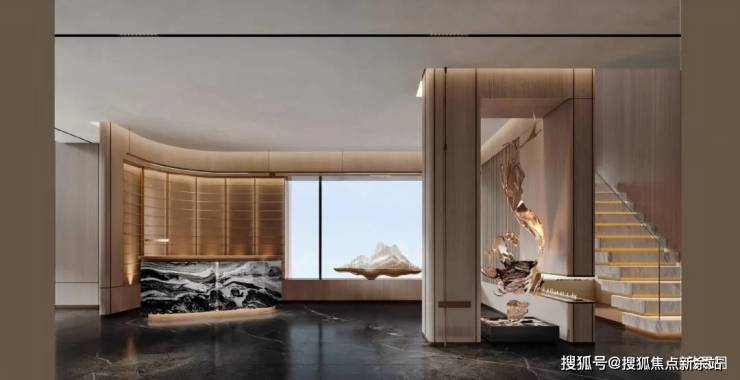 🔘归家礼序:三重尊奢归家,主入口前设置迎宾广场,台地式建筑拾级而上,入社区后景致相依,酒店式的归家奢华大堂,营造归家尊崇仪式感。