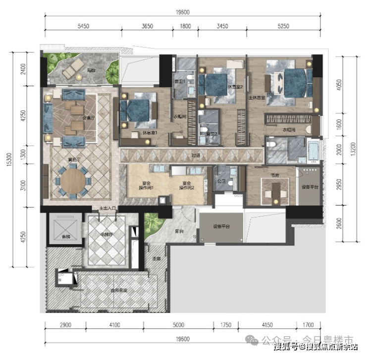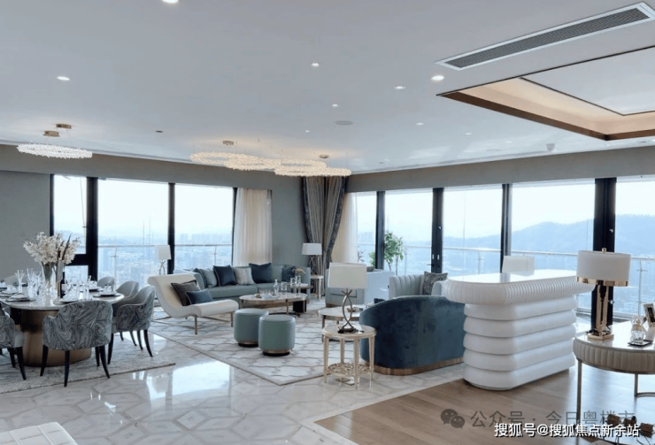 其次,步入424㎡样板房,3.7米层高的大平层一扫压抑,270°、长达26米的L型阳台,迎进更多阳光与清风,并且,全屋无梁无柱、无承重墙,意味着一套房子,可以按照自己的喜好,拥有N种设计方案。
