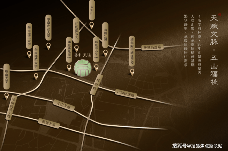保利天瑞项目坐落于天河区的核心地段,位于广州中轴与新中轴之间,一条科韵路贯通天河海珠两大核心区,也将项目与广州未来的两大发展极“琶洲与金融城CBD”链接起来。