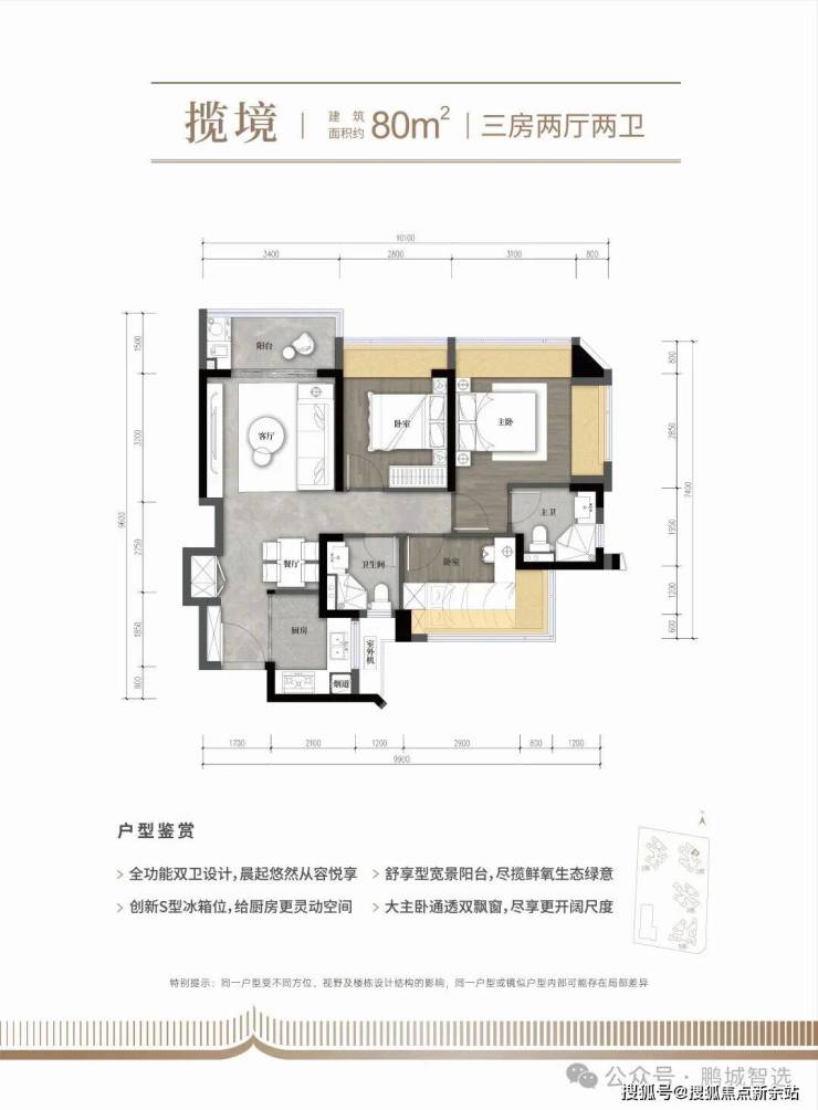 精研打造建面约80-106㎡3房-4房,精装交付多面宽/长阳台户型,弓字形冰箱位,打造光明爆款户型产品,盛载全家人的生活向往。