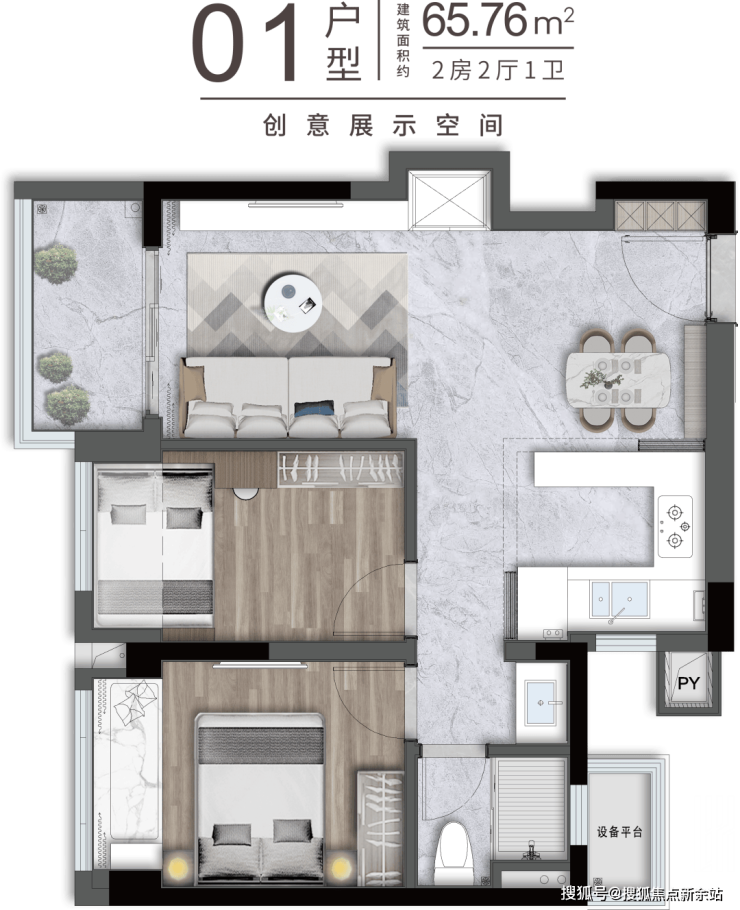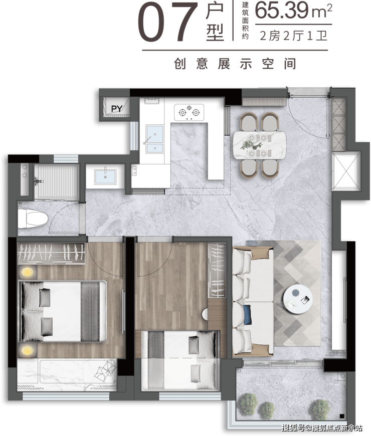 :65㎡左右户型,低门槛适配单身精英、二人世界、三口之家;
