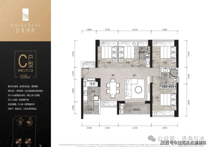 建面约118㎡四房两厅两卫双阳台