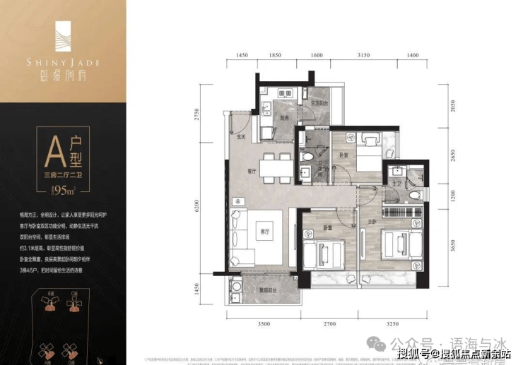 建面约95㎡ 三房两厅两卫双阳台