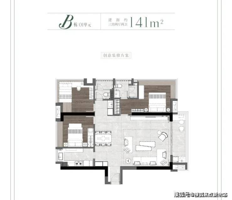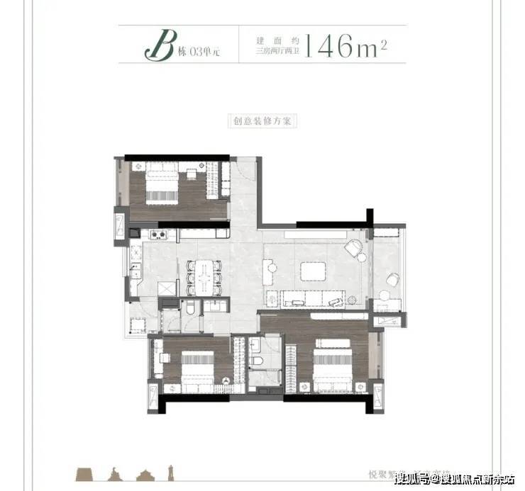 B栋03单元东西对流146㎡大厅大房三房户型: