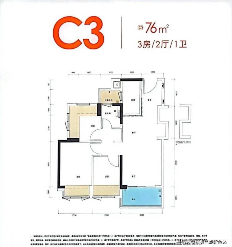 76㎡的3房2厅1卫: