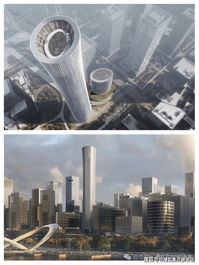 设计语言:“城市之门”理念,底部向上收窄成沙漏形态,如舞者动感曲线