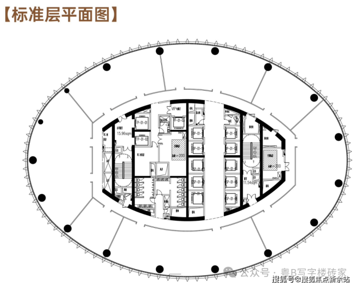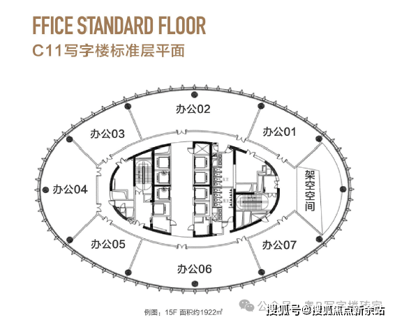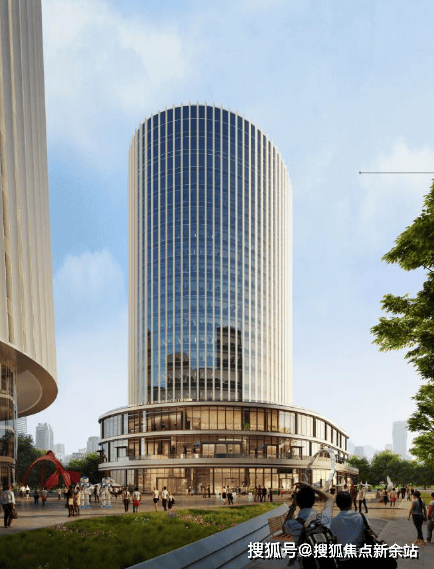 行业龙头专属办公区,建筑形体为直筒椭圆形塔楼,